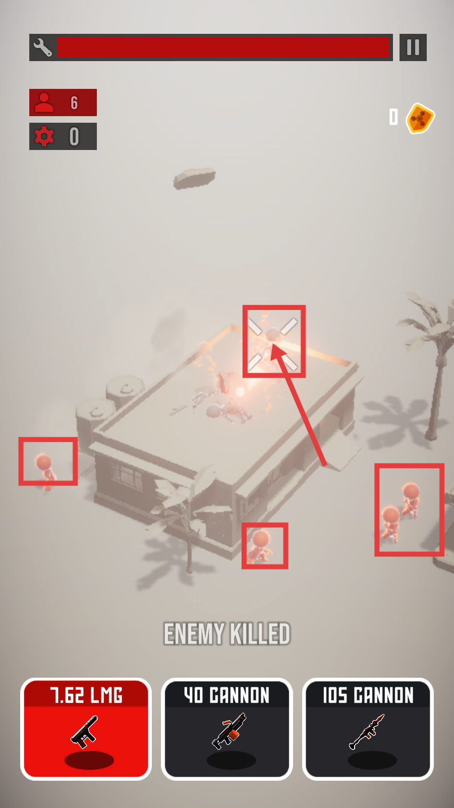2、战斗时瞄准红框标记的敌人,使用【7.62-LMG】等武器射击,消灭敌人推进游戏进度,留意敌人分布。