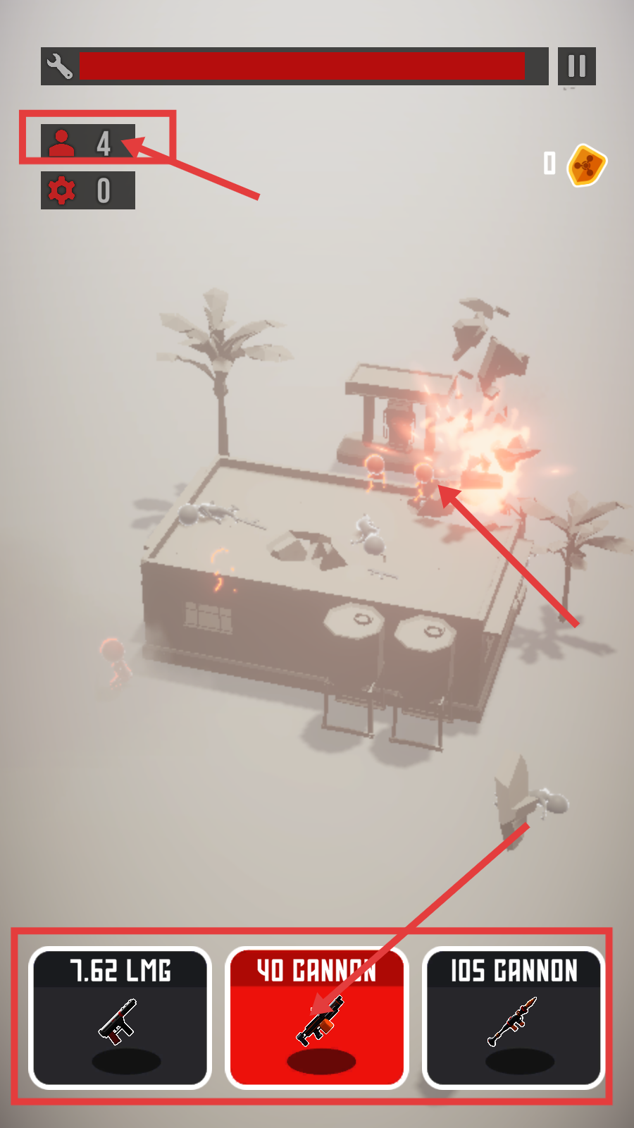 3、根据敌人数量和分布切换武器,如【40-CANNON】,高效清理敌人,关注左上角敌人数量变化以确保全部消灭。