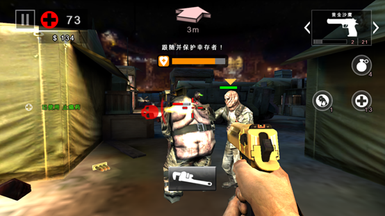 - 拿起武器扫射僵尸