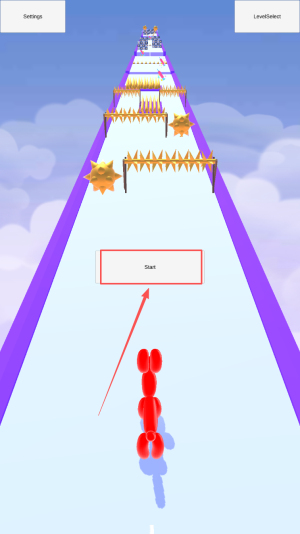 1、开启跑酷准备:进入游戏后选择关卡,熟悉气球人操控逻辑,明确 “躲避尖刺、顺利通关” 目标,了解形状变换规则。