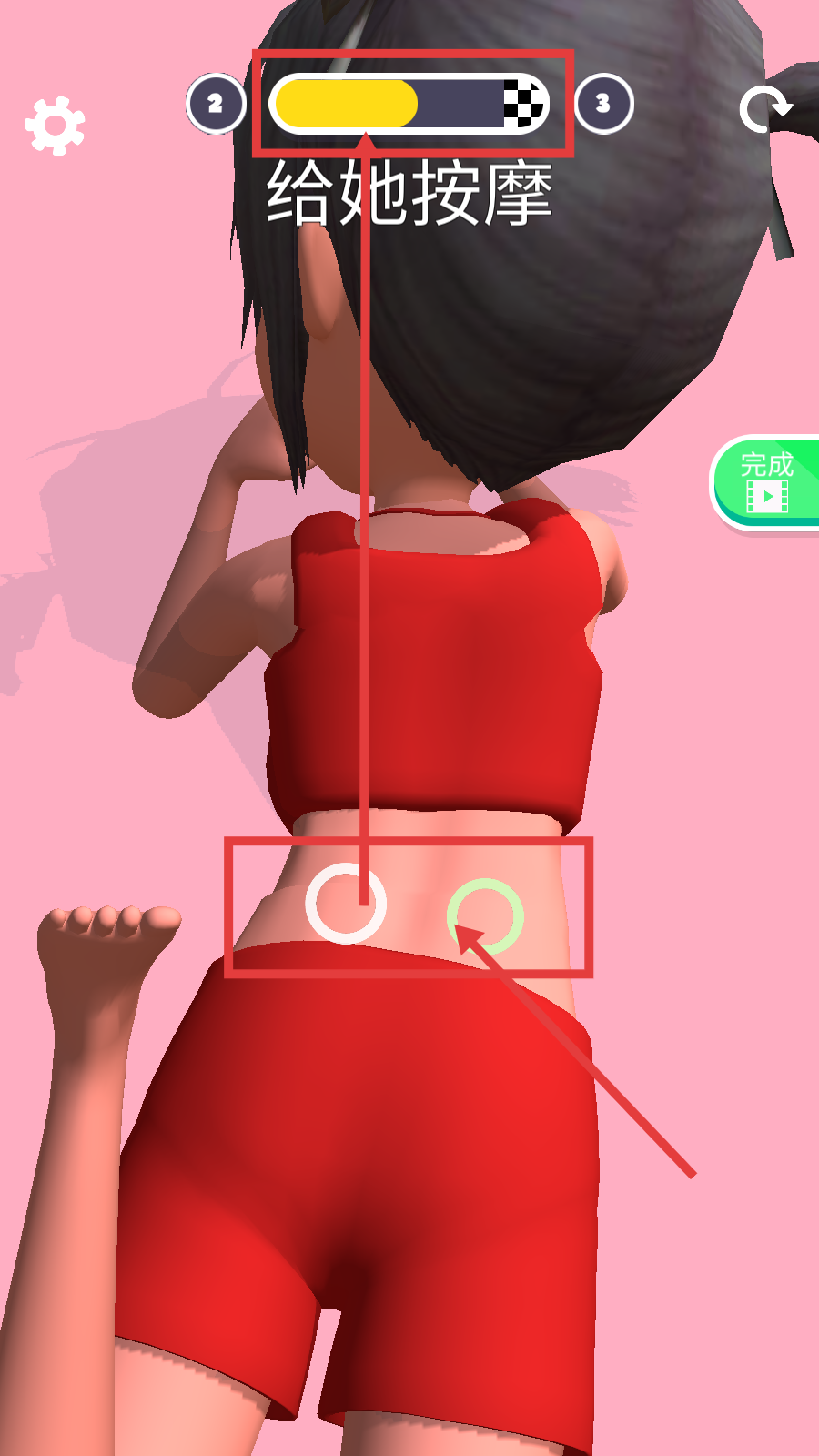 2、按摩时关注上方进度条,点击角色腰部按摩点,逐步填充进度条,完成按摩步骤。