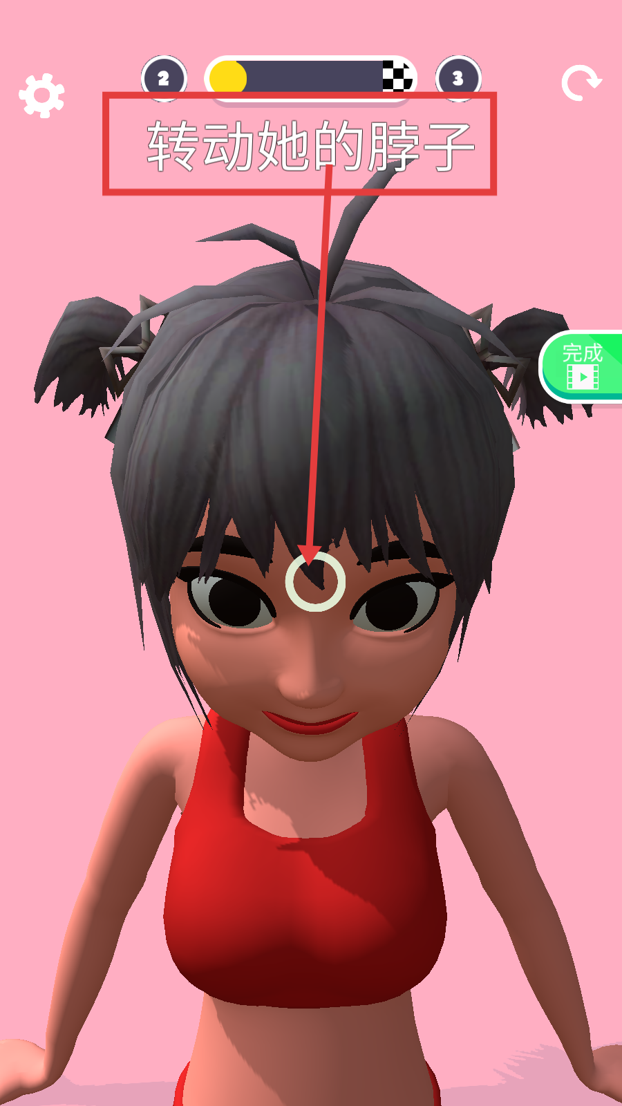 3、完成按摩后,按照【转动她的脖子】提示,操作角色头部标记点,完成脖子转动任务。