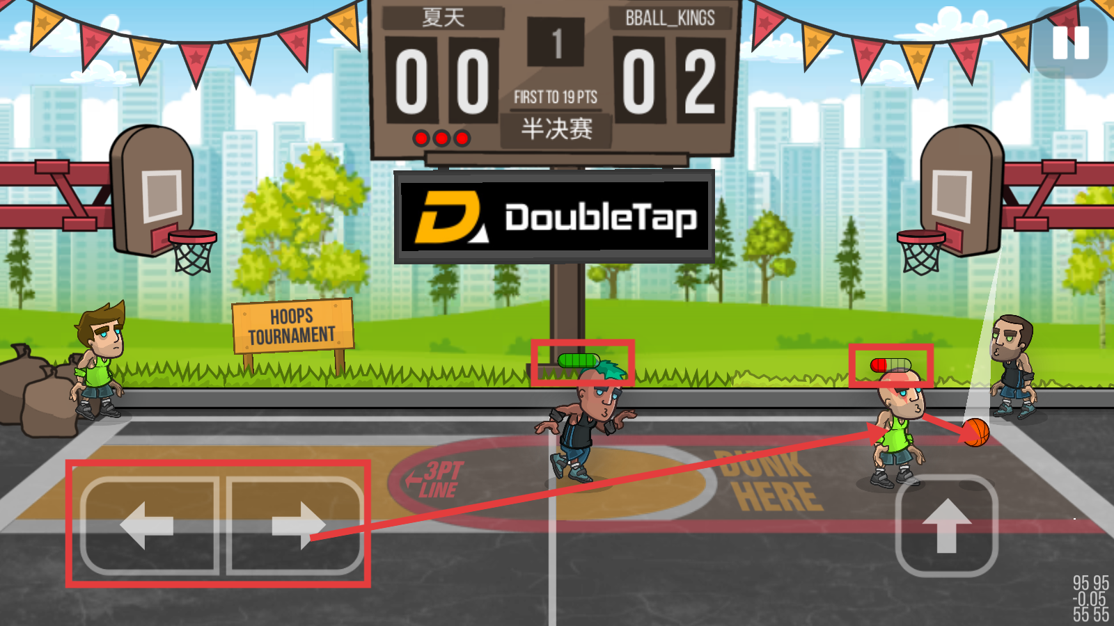2、比赛中用左右方向键移动角色,看准时机点击【向上】键投篮,争夺分数领先。