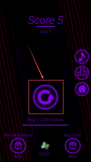 4、结算界面若Score达5,点「Shop」用初始金币买背景或配色,再启新局刷新best纪录。