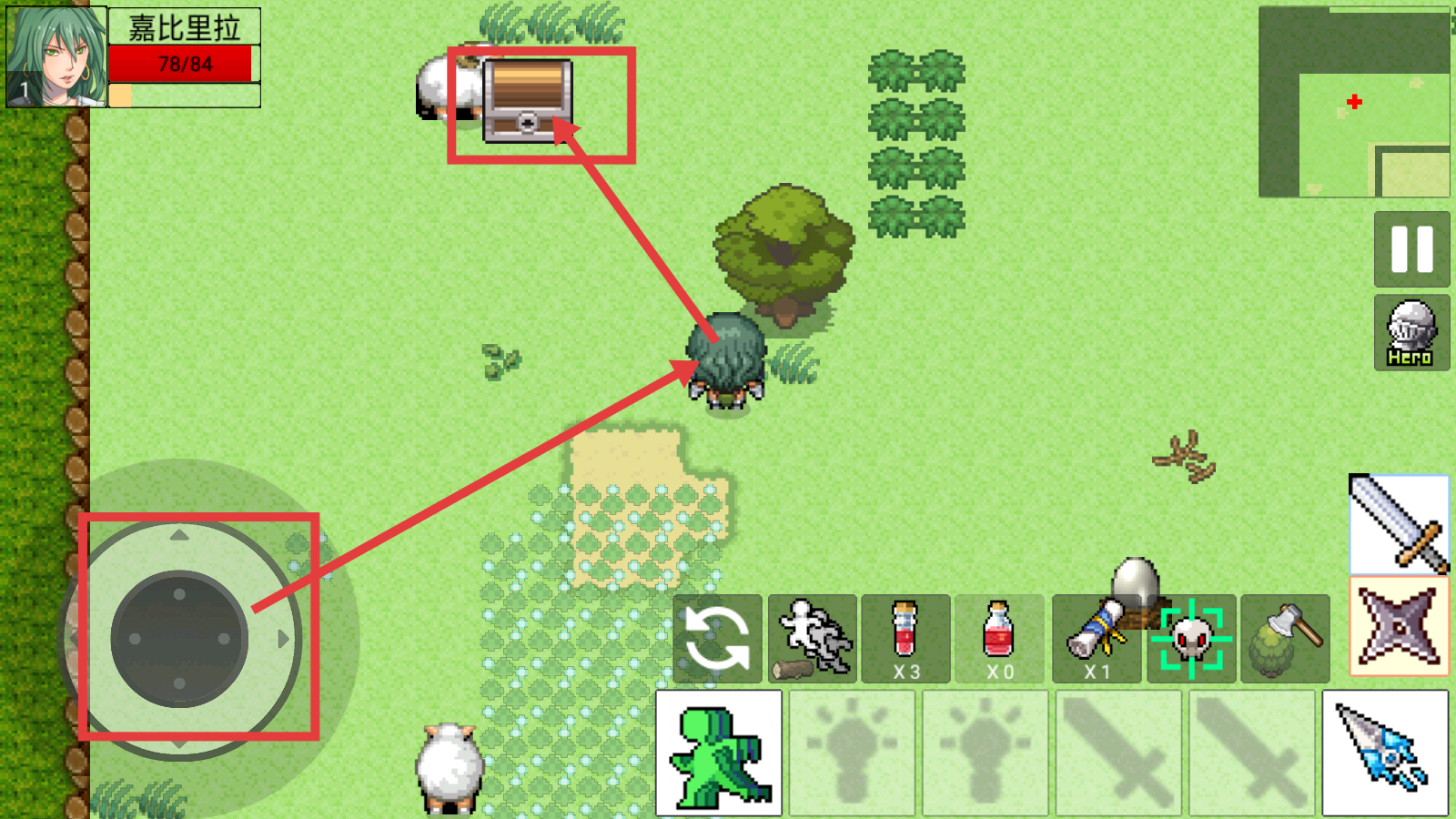 2、操控虚拟摇杆移动角色,野外发现【宝箱】时优先前往,探索可获取各类资源。