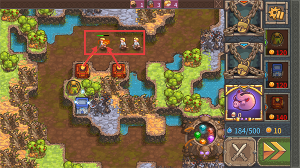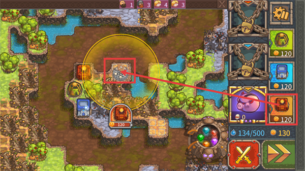 2、战斗中消耗【120-金币】建造对应建筑,布置防御工事,为抵御人类进攻建立防线。
