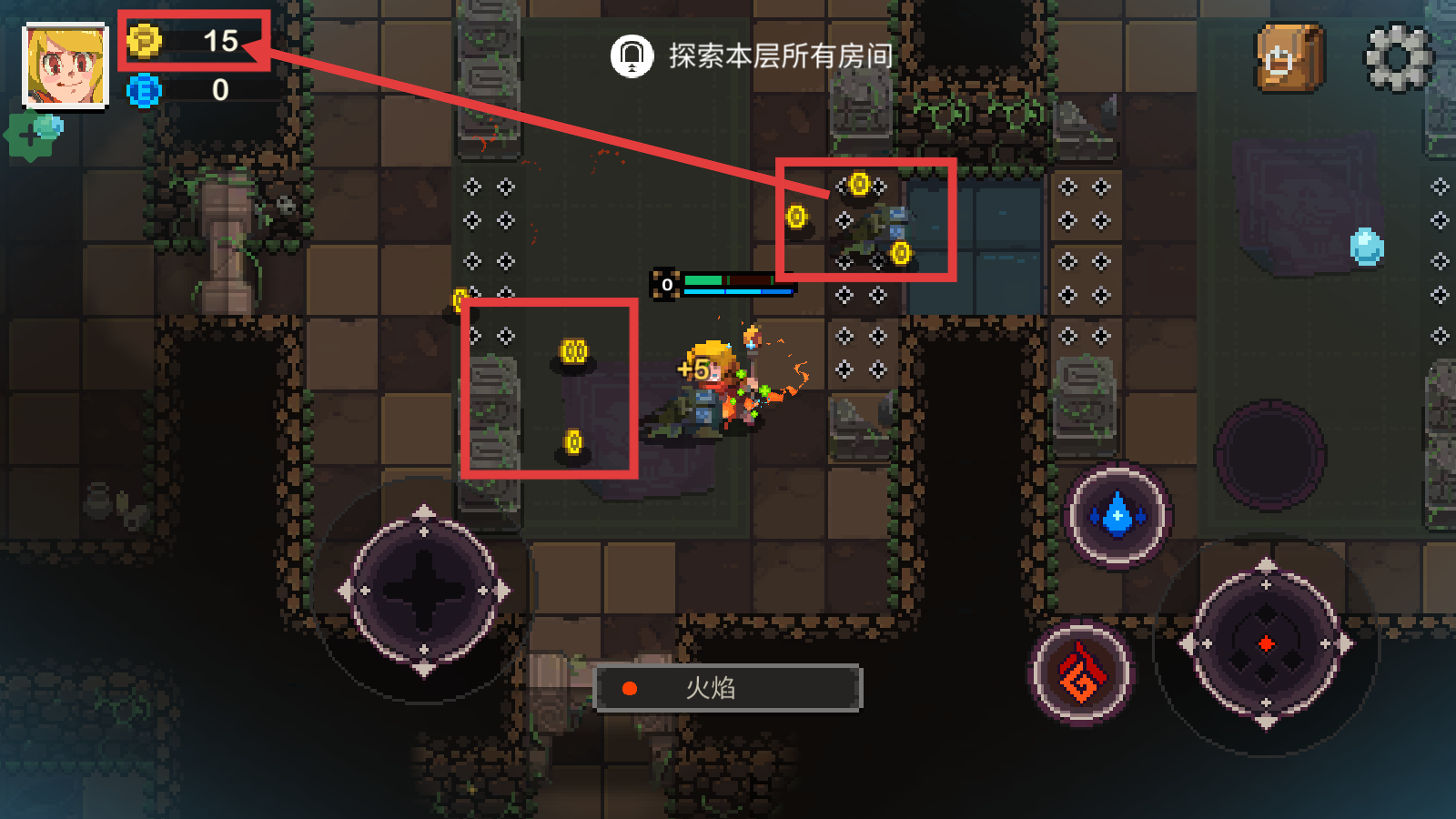 3、在探索过程中,积极收集房间内的金币,累计【15-金币】,通过探索多个房间获取资源,提升财富积累。