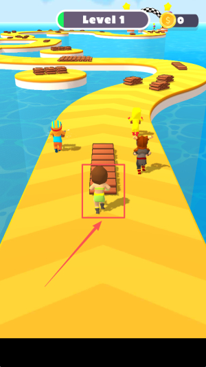 2、收集地板前进:控制小人在赛道移动,主动收集沿途地板,确保行进路线顺畅,同时留意前方障碍物位置。