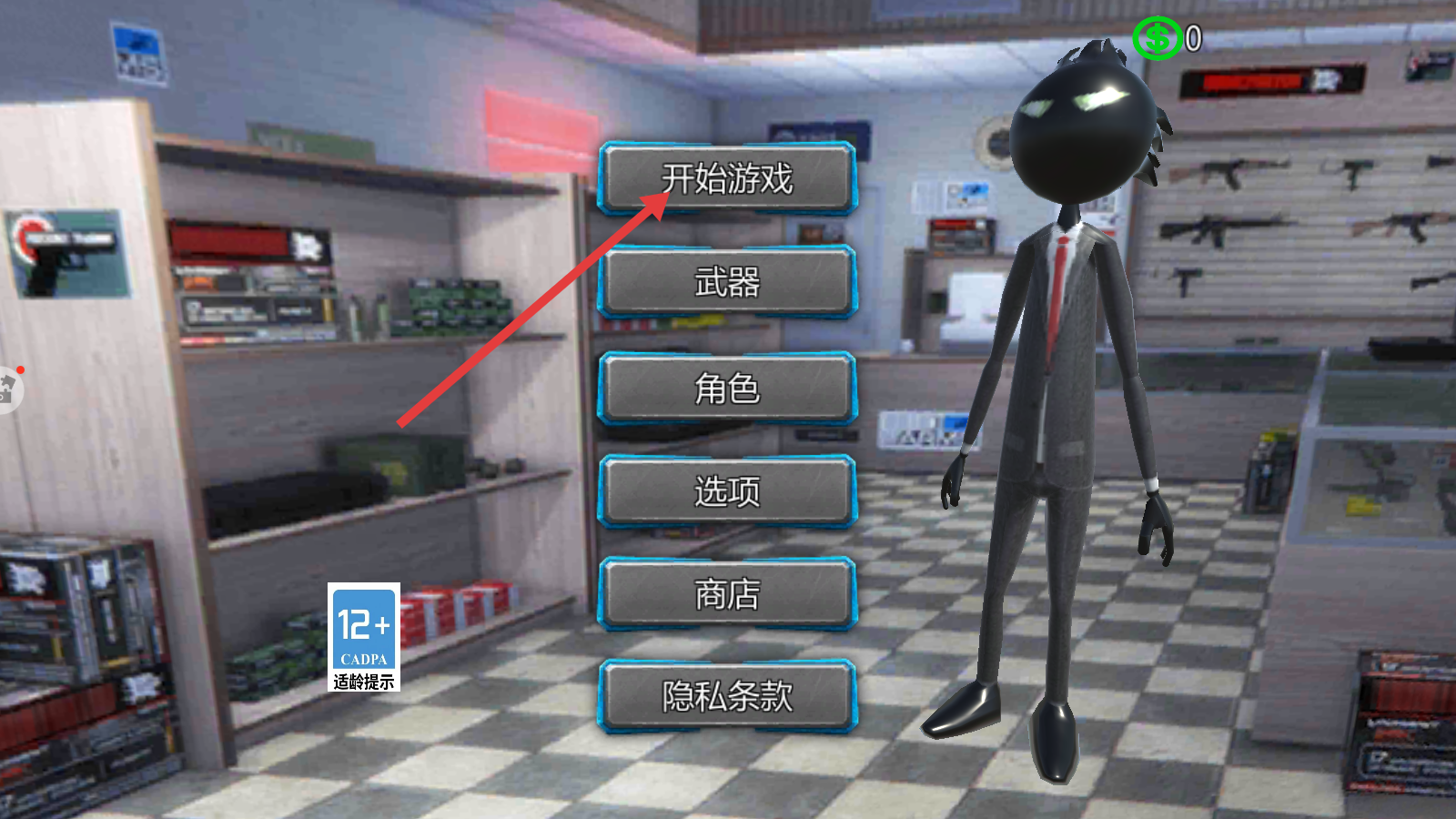 1、留意【12+-CADPA适龄提示】,点击【开始游戏】按钮,正式进入游戏。