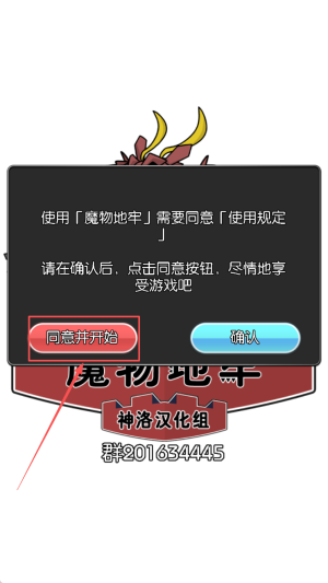 1、如何同意使用规定:在启动界面阅读条款后点击“同意并开始”,进入游戏。