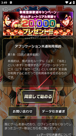 1、如何开始游戏:在启动界面点击“新规登録”,创建新账号并同意用户协议。