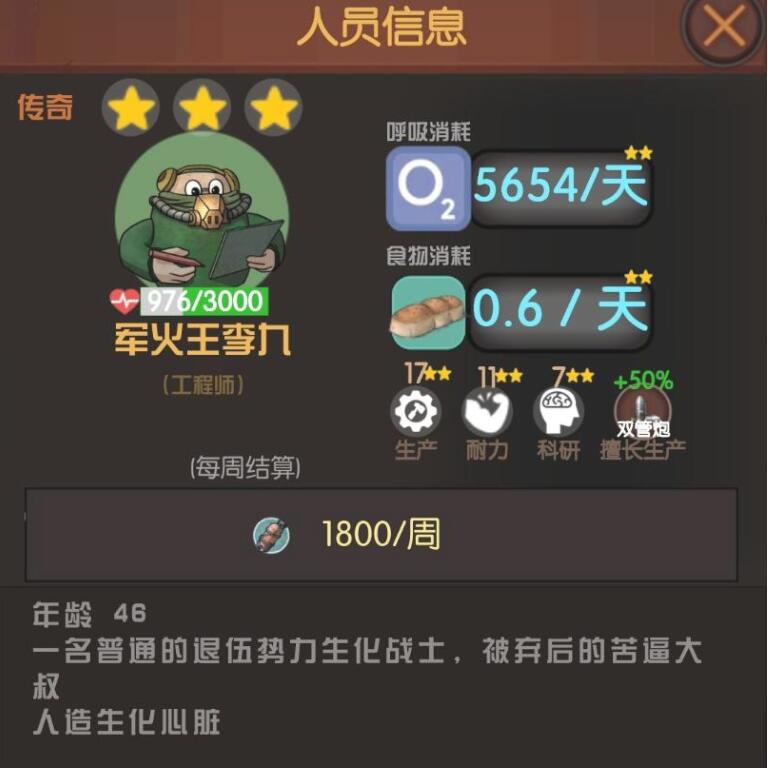 如下图军火王李九也是极品中的极品管理员,因为他的特殊技能是制作双管炮的。这武器有破防属性,前期中期后期都是清理小怪,清理boss的主要杀手,子弹制作的更快,更方便生存。