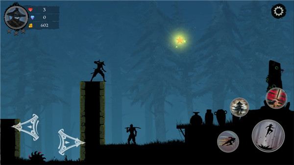 1、独特的美术风格:游戏采用了日式剪影的美术风格,让玩家在游戏中感受到浓厚的日本文化气息,更好的发挥自己的技巧冒险。