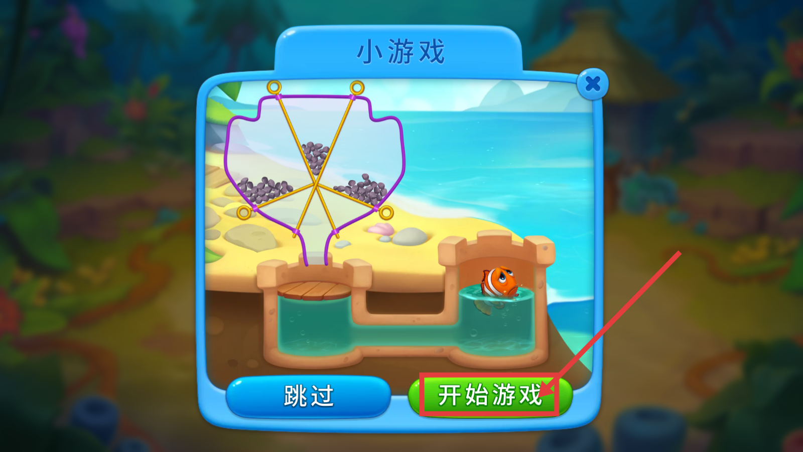 1、点击【开始游戏】进入小游戏,准备通过操作机关帮助小鱼,开启游戏挑战。