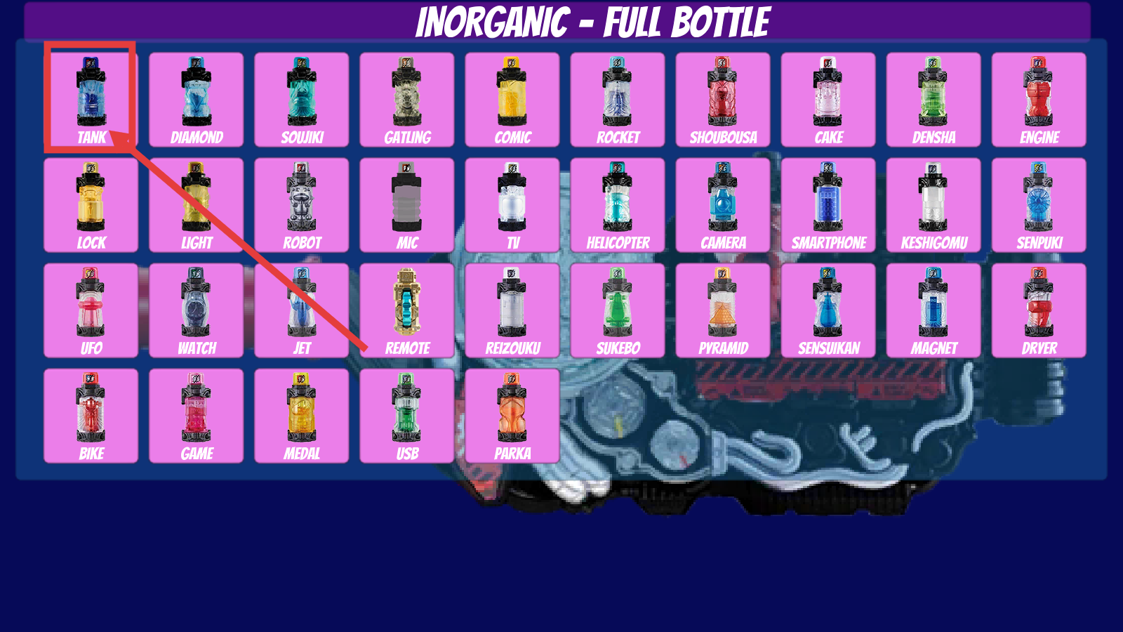 3、在无机满瓶列表中选择【TANK】满瓶,明确其类别和样式,以便与兔子满瓶形成最佳搭配。