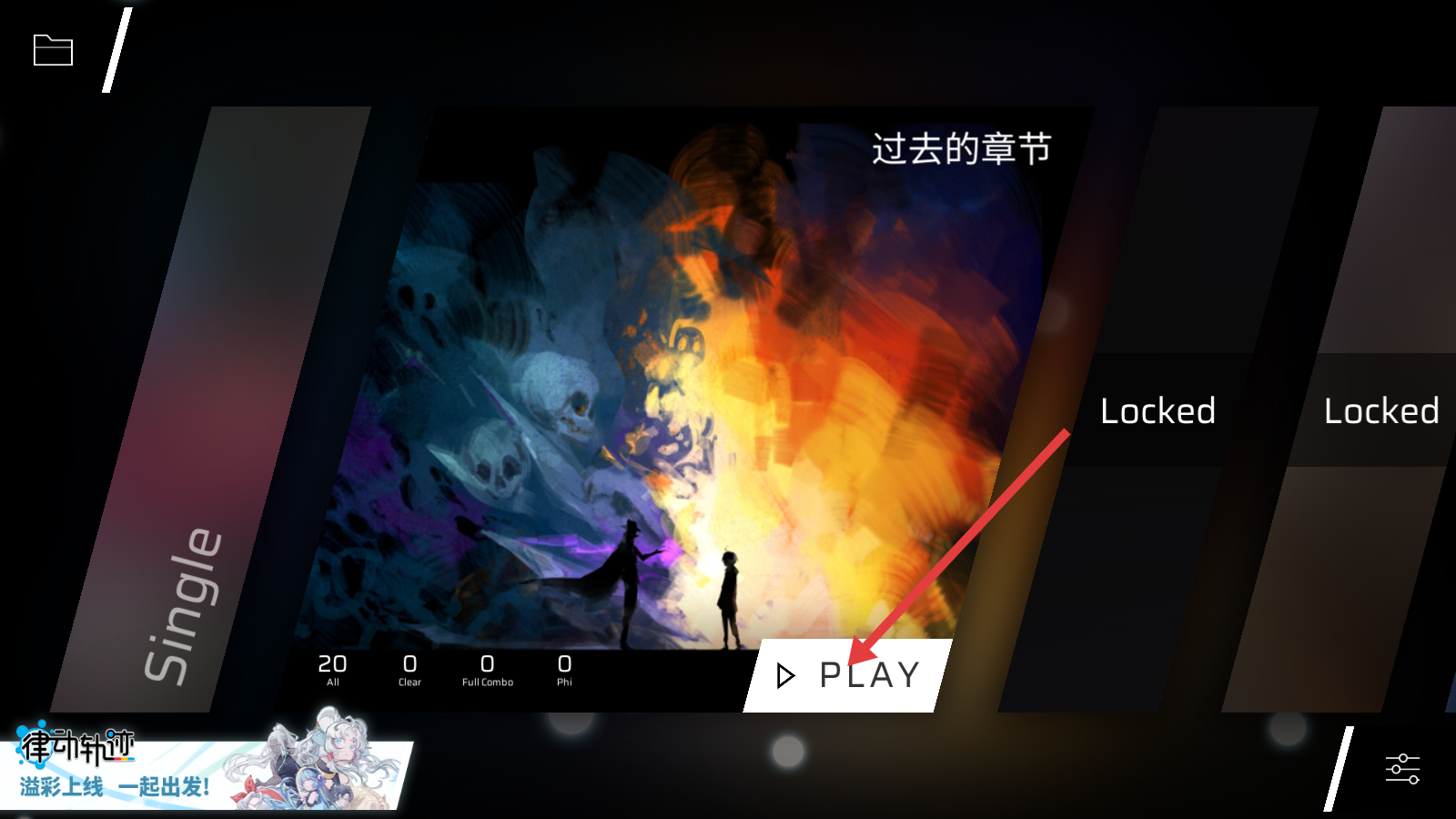 1、点击【PLAY】进入“过去的章节”音乐关卡,开启节奏挑战,熟悉关卡界面与玩法。