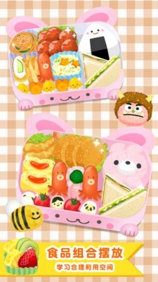 2、简单易懂的操作方式:游戏的操作方式非常简单易懂,不需要任何烹饪经验和技能。玩家只需要使用手指来操作各种工具和食材,就可以完成制作便当的过程。这种简单易懂的操作方式让游戏适合所有年龄段的玩家。