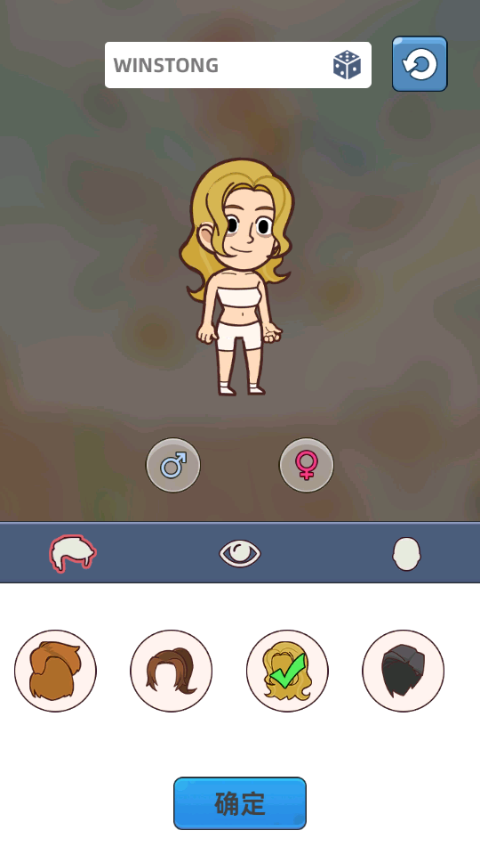 1、在本站下载游戏打开进入,选择发型、眼睛、肤色以及性别,来创建一个属于自己的角色。