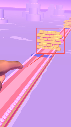 2、操控手指前进:用手指在屏幕操控赛道角色移动,根据前方路况调整方向,确保角色稳定前进。
