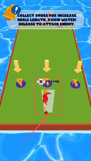 2、接着,左右滑动屏幕收集同色高跟鞋,持续增高鞋跟长度,同时避开地面上的水洼。
