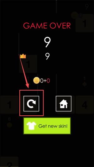 4、最后,若屏幕出现「GAME OVER」,点击「Get new skin!」可换皮肤再玩,或直接重开一局继续刷新高分。