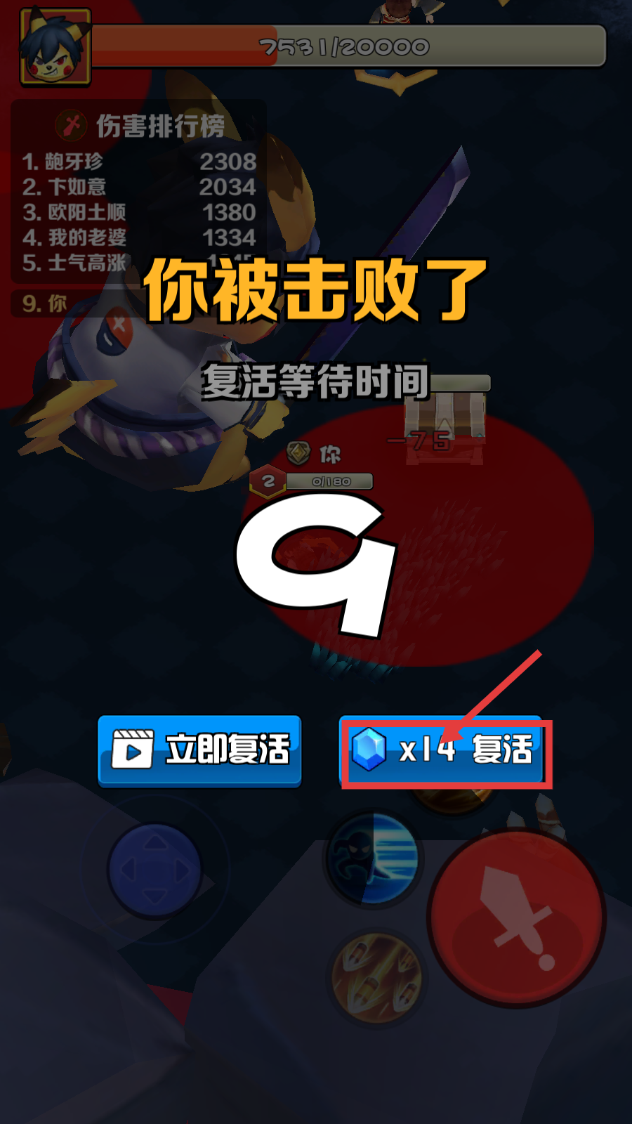 4、若被击败,可选择【x14钻石复活】继续战斗,积累战斗经验后调整策略,争取在伤害排行榜中提升名次。