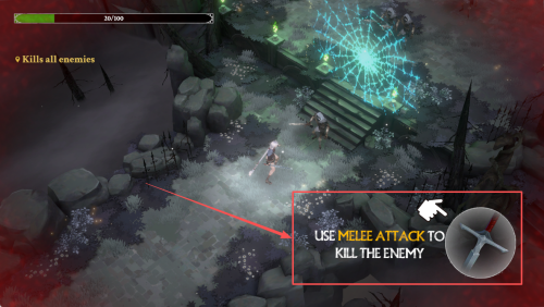 3、攻击敌人:当遇到敌人时,点击屏幕右侧的武器图标,使用近战攻击消灭敌人。