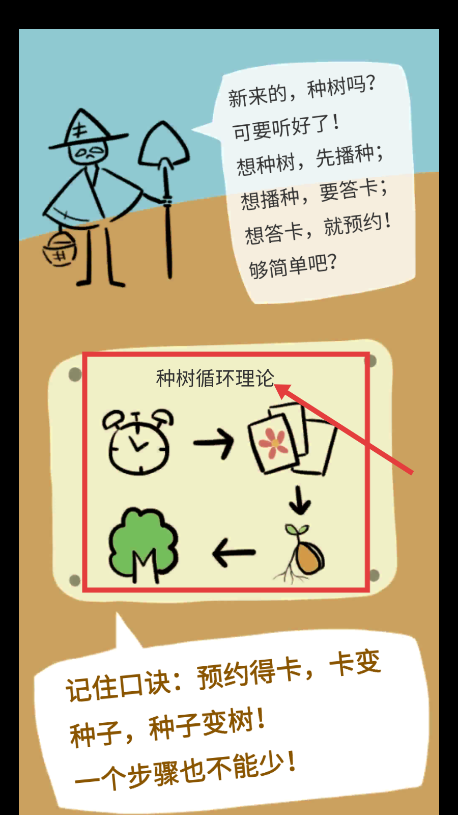 1、要种树先记【种树循环理论】,按预约-得卡-变种子-成树的步骤,每步都不能少。