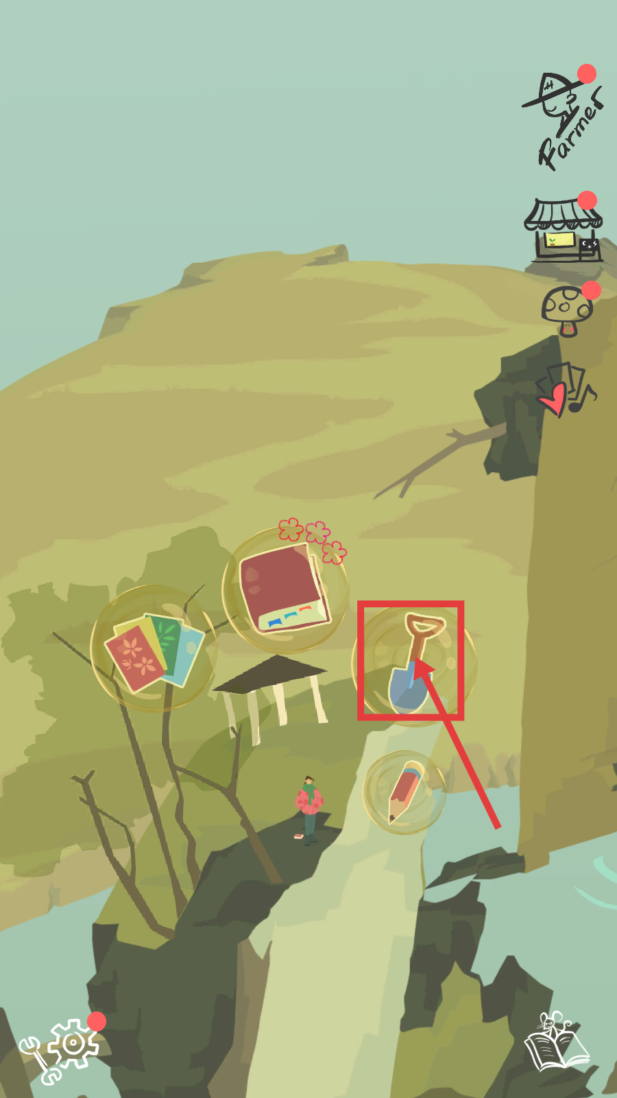 2、进入游戏界面后,选择【铲子】工具,为后续种植操作做准备。
