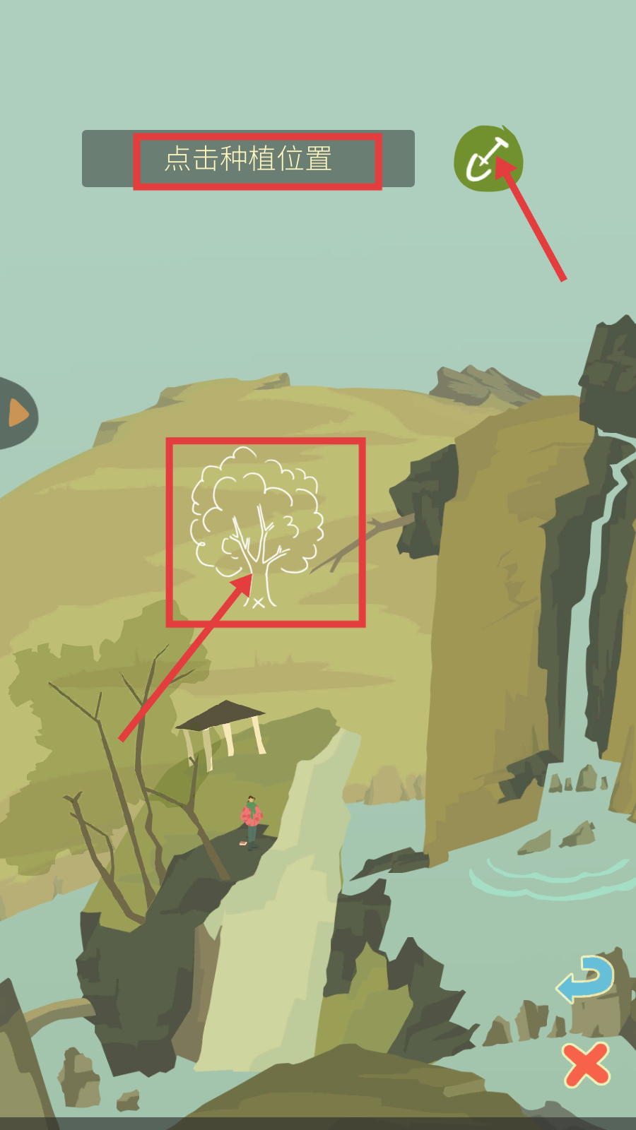 3、点击【种植位置】的树木标识区域,确定种树的具体地点,完成种植操作。