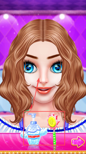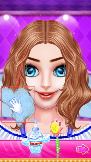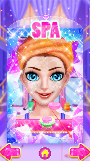 3、然后,按提示依次完成 SPA、洁面、敷面膜、化妆与换装步骤:用手指拖动工具或服饰到公主身上即可。