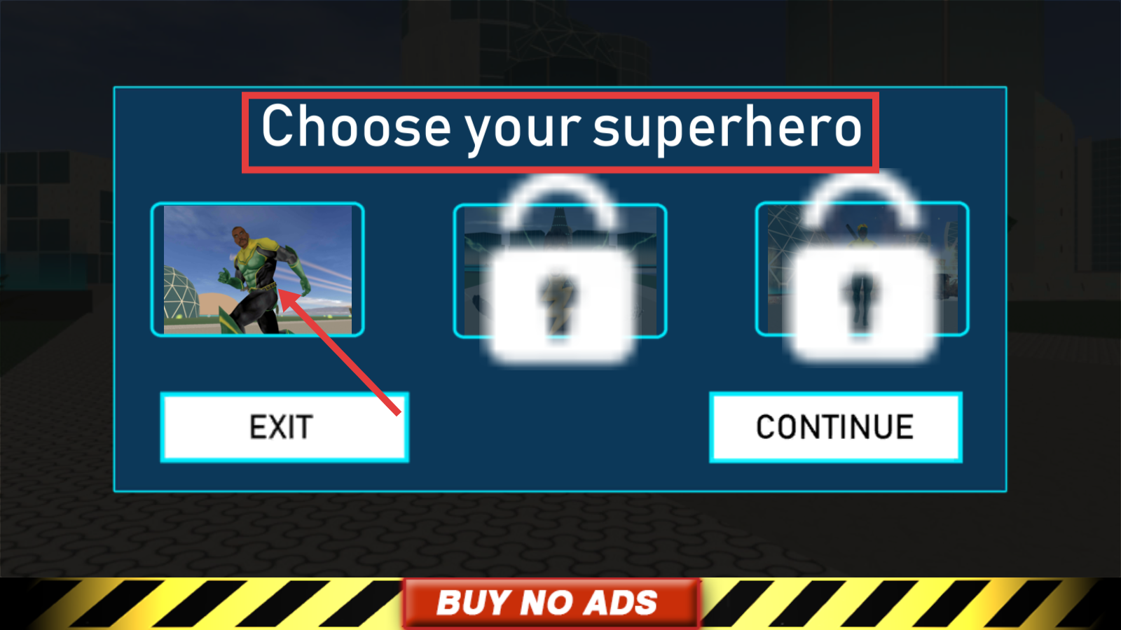 1、在【Choose-your-superhero】界面,选择第一个超级英雄,点击【CONTINUE】开启冒险。