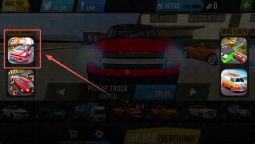 2、接着,在“MISSION 1”界面点击“DRIVE”,选择已拥有的“PICKUPTRUCK”开始任务。