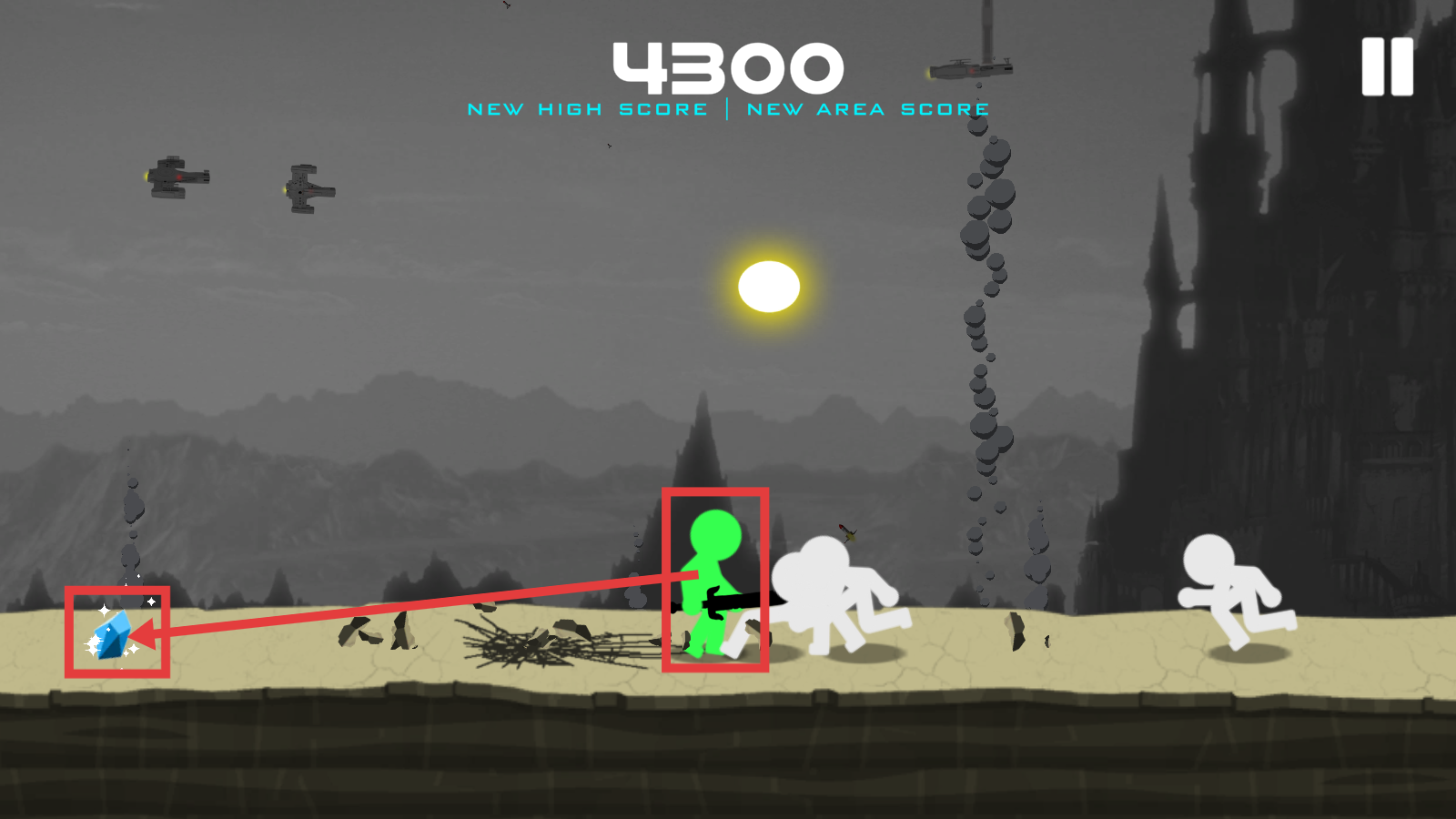 3、探索时收集蓝色钻石,操控绿色角色击败敌人,分数提升至【4300】,积累高分。