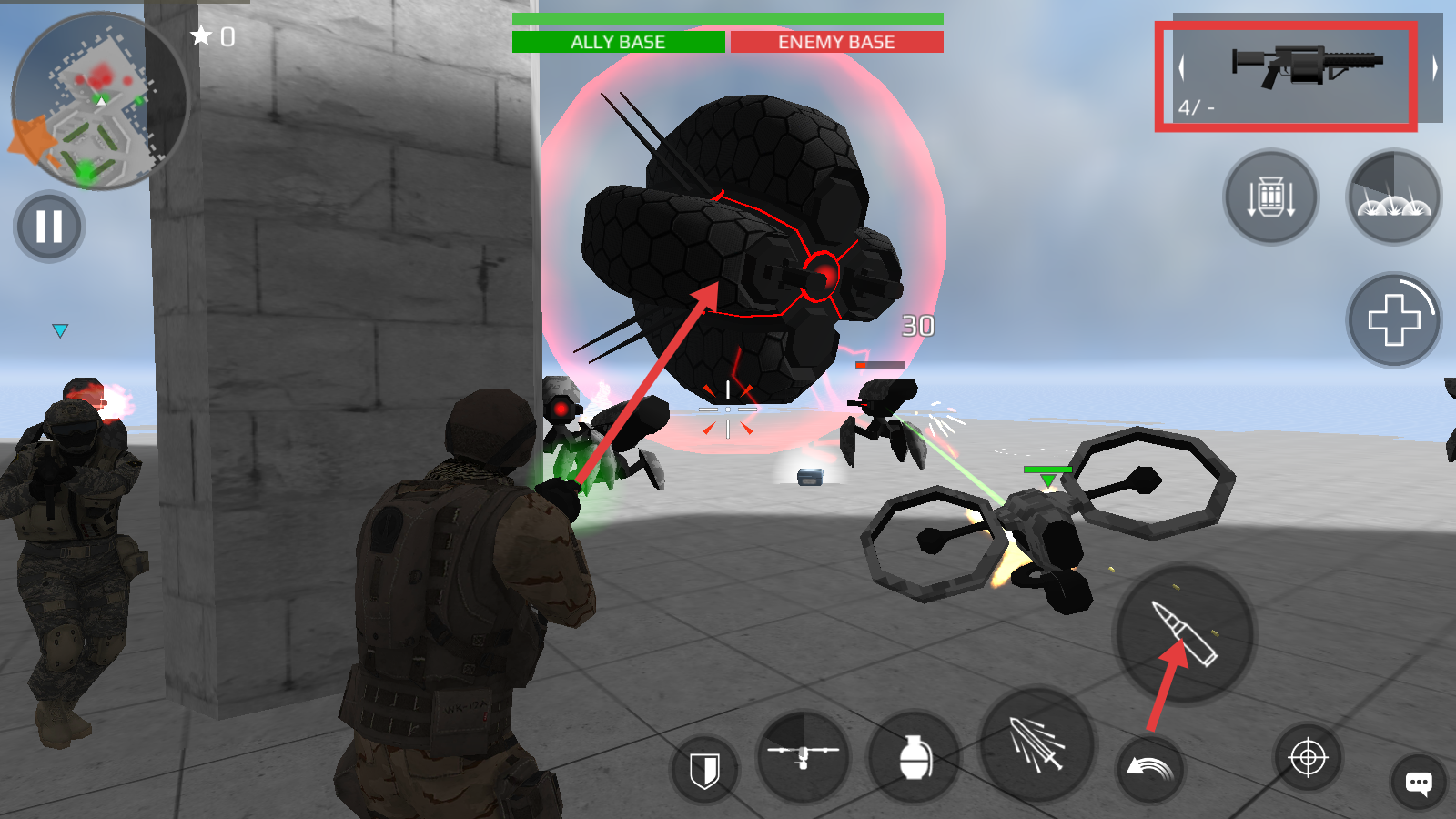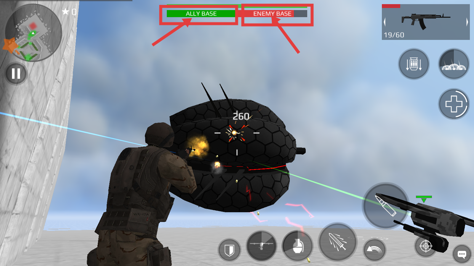 4、关注上方己方基地(ALLYBASE)和敌方基地(ENEMYBASE)的血量,策略性攻击敌方基地,同时保护己方基地,争取战斗胜利。