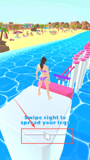 2、接着,按照提示 wiperight to spread your legs,向右滑动屏幕让角色双腿张开,准备起跳。
