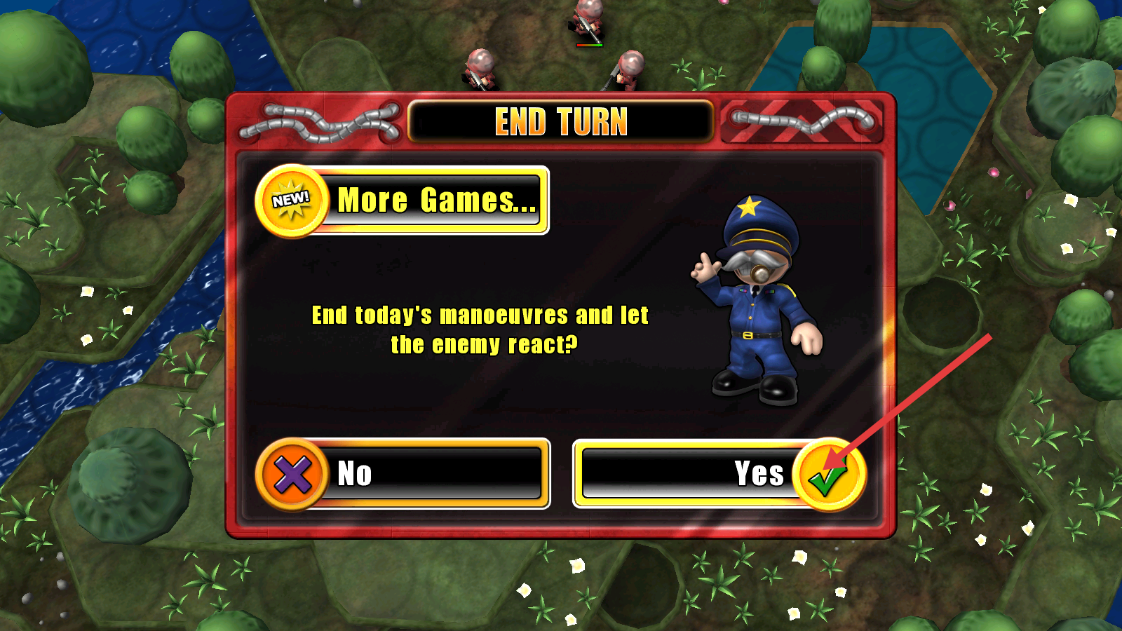 4、完成当前回合操作后,点击【Yes】确认结束回合,让敌人做出反应,推进游戏进程。