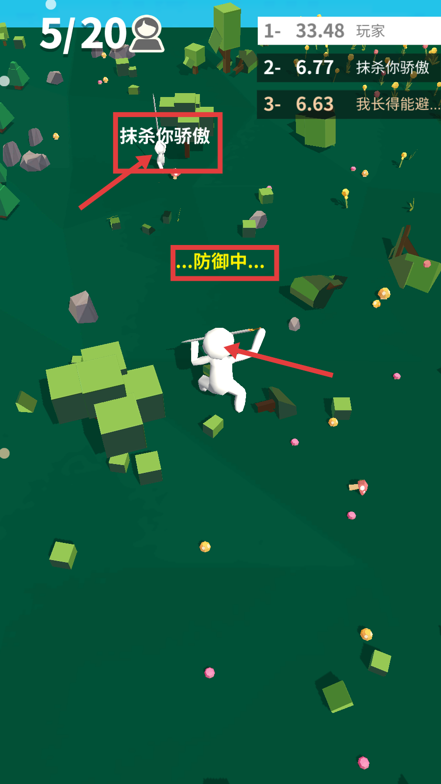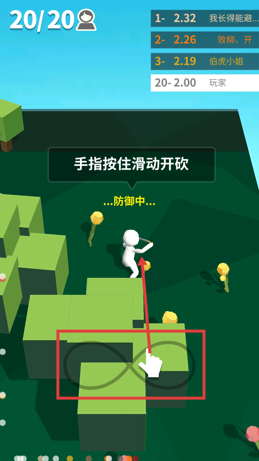 1、战斗时遵循【手指按住滑动开砍】的操作提示,在【20/20】生存进度下积极开展战斗。