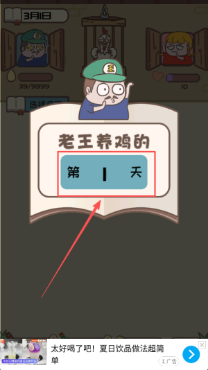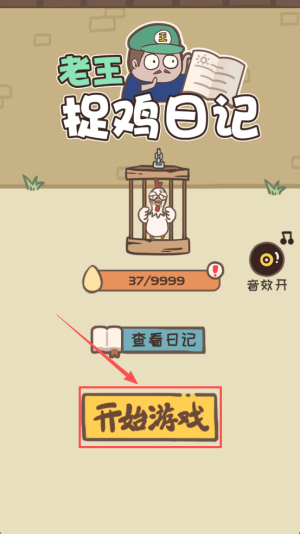 1、首先,在主界面点击“开始游戏”,进入老王的养鸡日常,注意右上角37/9999的进度。