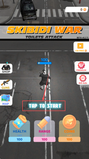 1、开始游戏:在游戏主界面,点击“TAP TO START”按钮,进入游戏。