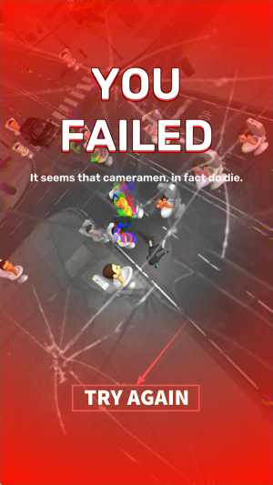 4、重新开始:在游戏失败界面,点击“TRY AGAIN”按钮,重新开始挑战。