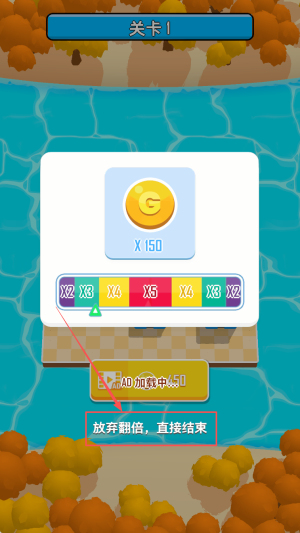 4、结算出现X2至X5倍数,想快速续点按「放弃翻倍,直接结束」;若求金币最大化,等AD加载完再拿。
