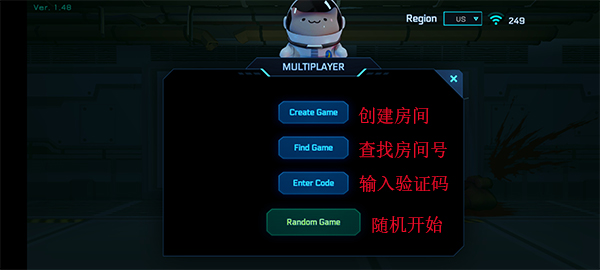 2、联机方式很简单,可以创建房间或者搜索房间号,如果你是一个人还可以点击随机游戏进行冒险。
