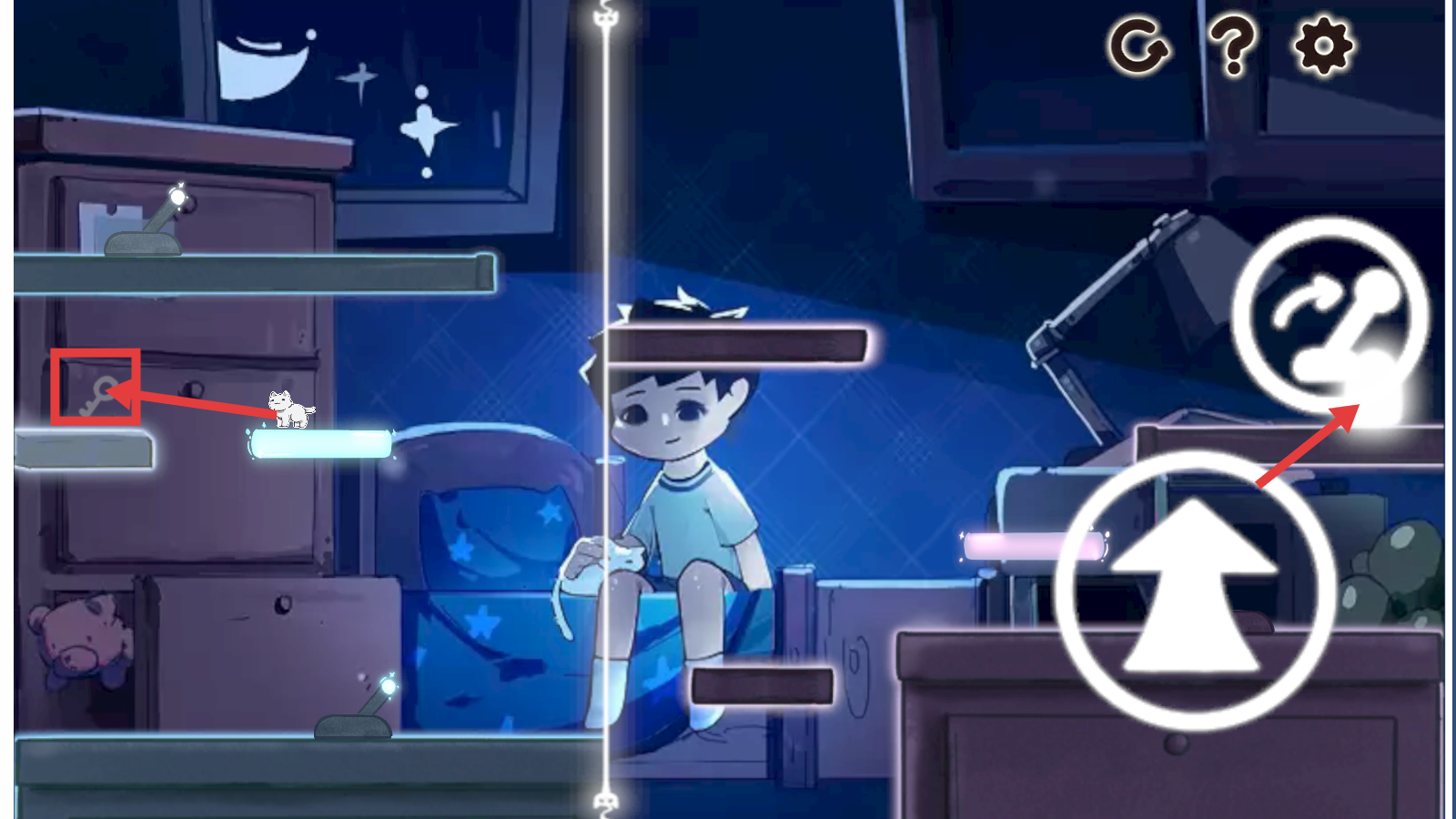 3、关注左侧钥匙与小猫,利用右侧操作键移动角色,获取关键道具,助力剧情推进与关卡解锁。