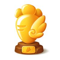 建模师做得还不错,奖杯外形跟本波有九成九相似,依然是具有代表性的炯炯有神的大眼睛,摆出阿波想了好几天才想出来的帅气pose。后面同样加上了萌萌哒天使翅膀,代表着“守护者”这个角色。外表上了一层金色薄片,看起来闪闪发光,跟“金萝卜奖杯”这个名字简直绝配。不愧是以本波形象做出来的“小金萝卜”,果然不同凡响!