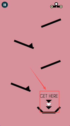 3、看到「GET HERE」提示时,调整角度让小球准确落入目标区域。