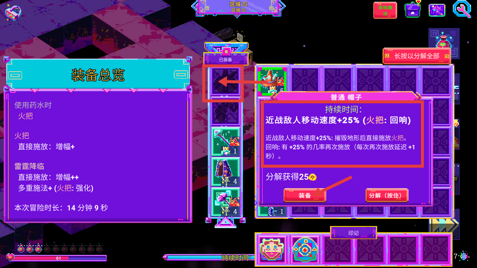 3、海量法术与饰品提供丰富搭配空间,28种独特法术搭配74种奇异饰品,动态装备生成机制,让每次冒险的能力组合都充满新鲜感。