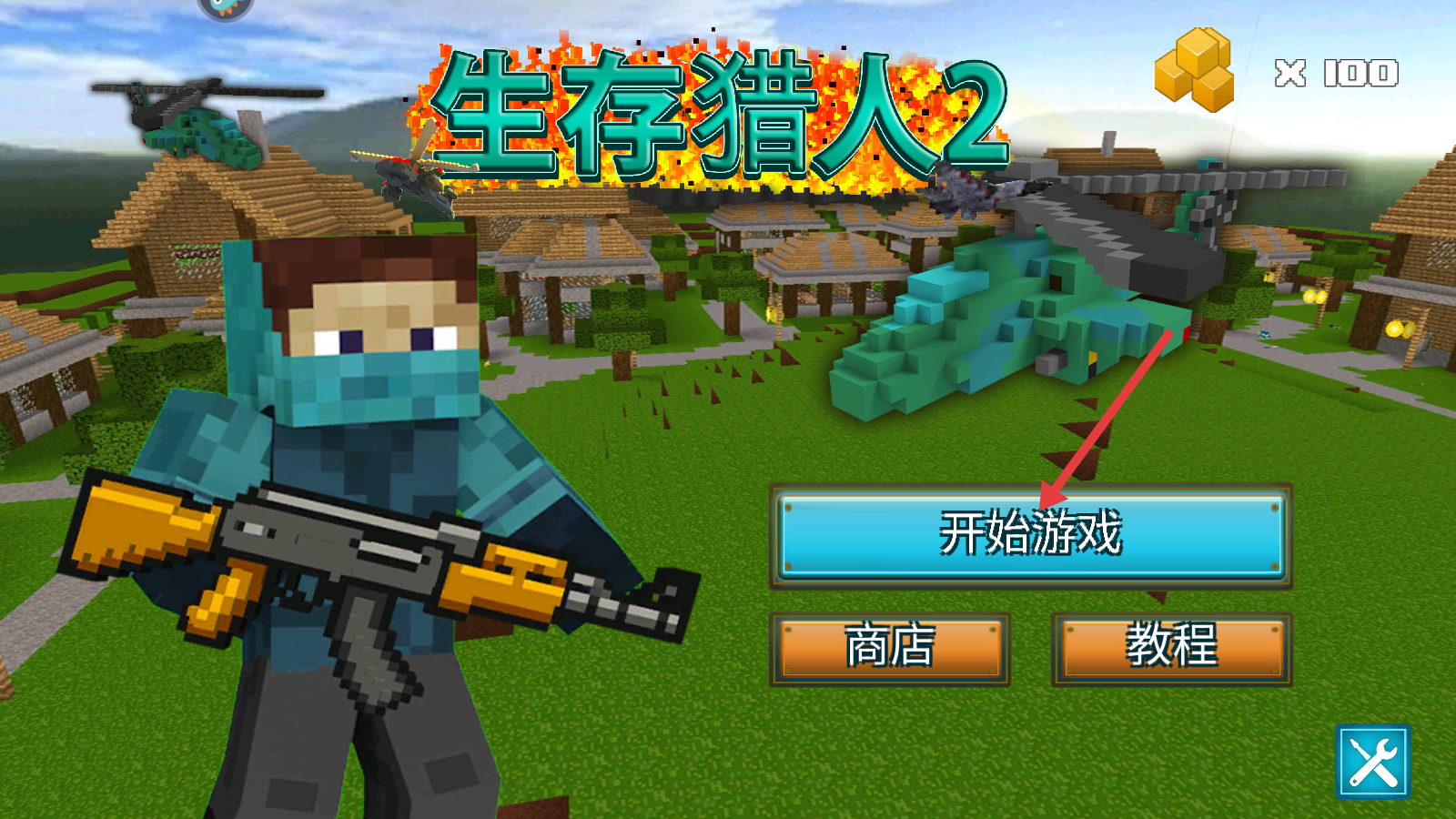 1、点击【开始游戏】进入《生存猎人2》,可先查看【商店】【教程】功能,熟悉后开启游戏。