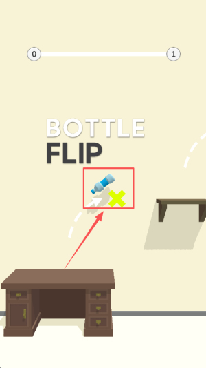 2、接着,用手指按住屏幕蓄力,松手让水瓶腾空翻转,目标是让它稳稳立在桌面。