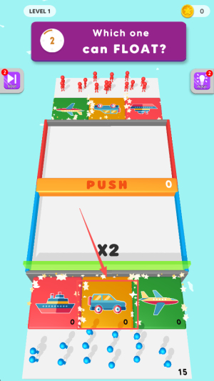2、系统匹配后,看清“Which one Can FLOAT?”等题干,15 秒内把答案气泡推给对手。